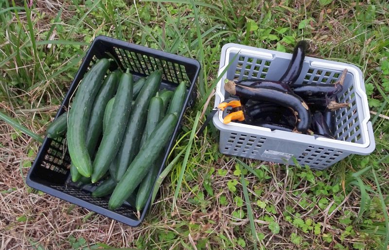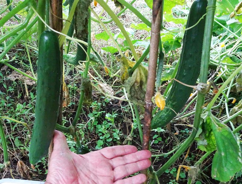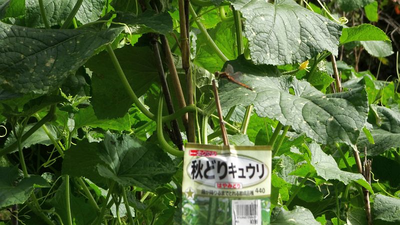 秋採りキュウリ、突然ドサドサ採れ始めて、ご近所にお裾分け。