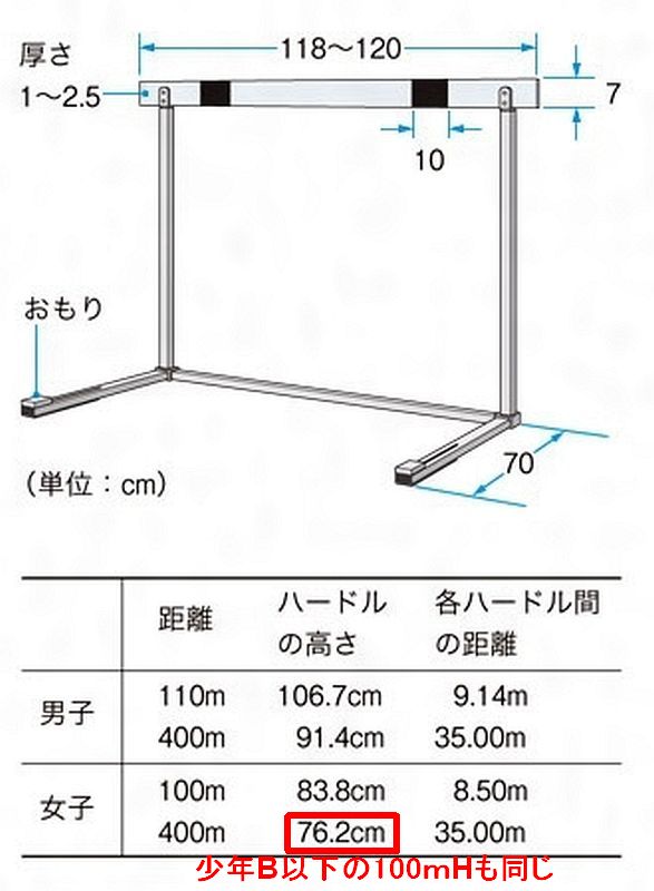 ところが、国体(今は「国スポ」というらしい)の少年男子110mHで、「古賀ジェレミー(東京・東京高3) 13秒07(+0.7)=U20日本新」というのを見ていて、これ、やっぱりハードルが低いからだろうなと思って、調べてみた。7.6cm低いのね。この7.6cmの差は大きいんだろうな。女子はさらに低い。