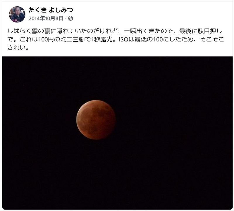 皆既月食? 11年前だったのか。なんかそんなことがあった気がするけれど、10年以上も前のような気がしない。2、3年前のような……時間の流れは怖ろしいわね。