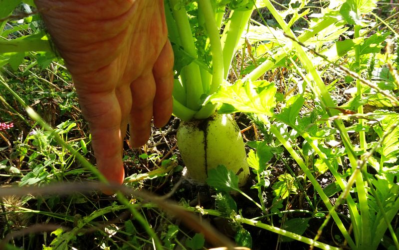 春に蒔いた大根が今頃少しそれらしくなってきた。
