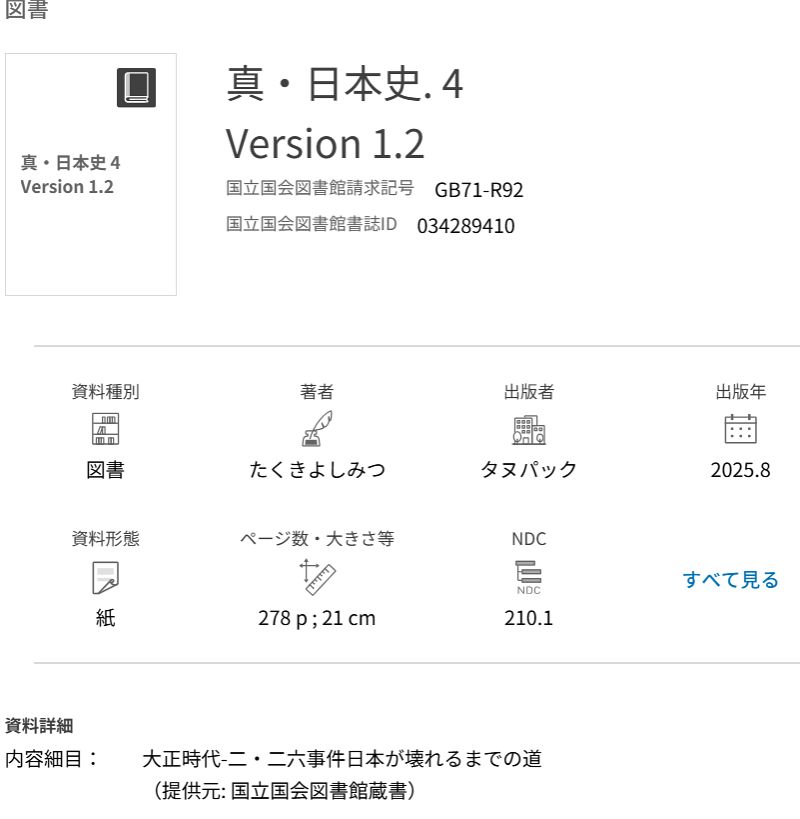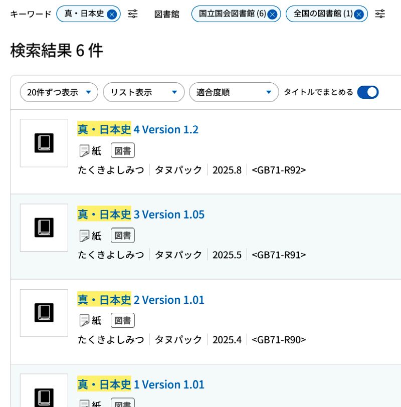 国会図書館で「真・日本史」シリーズがちゃんと検索できると確認できたので、今日もまた第五巻完成を目指してシコシコお勉強するのだわ。