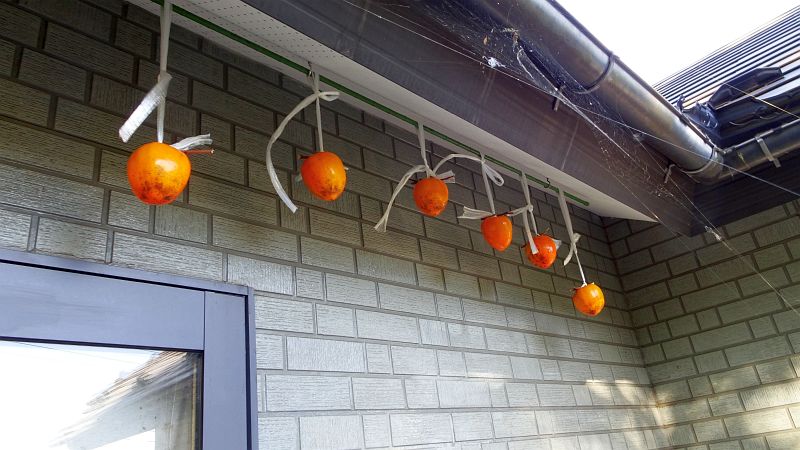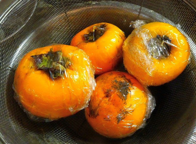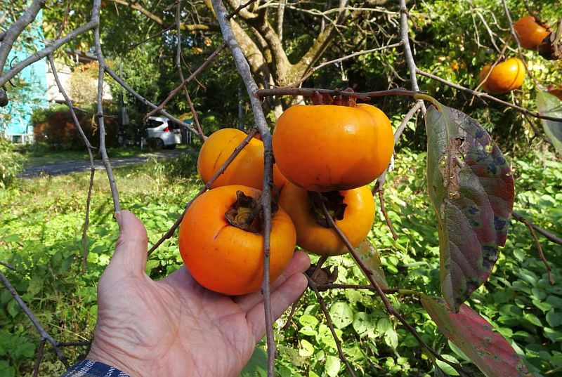 柿を14個もいでみた……のはいいのだが、さて、どうしたものか。干し柿作るのめんどくさいなあ。表面を熱湯かアルコールで消毒してから……?