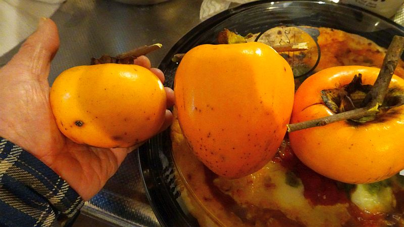 今年の柿はでかい。もいで干し柿にするかどうか悩み中。