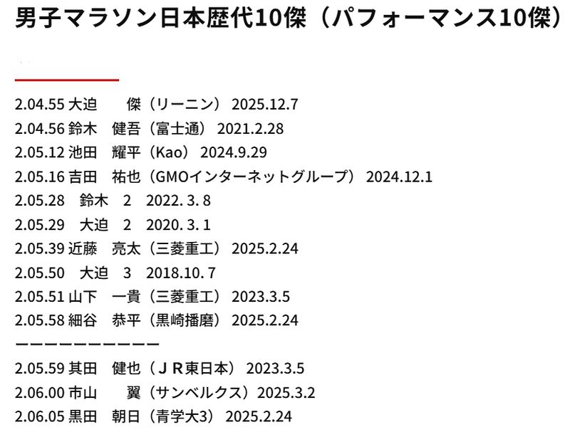 バレンシアマラソンが12月7日、スペインの同地で行われ、男子では34歳の大迫傑(リーニン)が2時間4分55秒(速報値)で4位だった。優勝はジョン・コリル(ケニア)で2時間2分25秒(月刊陸上競技)
