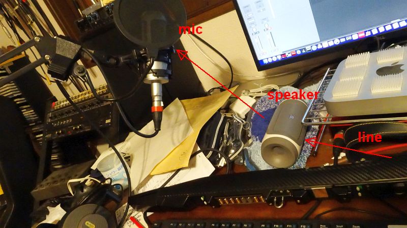 今はもう手に入らないEWI4000S。この楽器の表現力を少しでも発揮させられるようにと、今回初めて、ライン入力ではなく、ミニスピーカーから出した音をマイクで録音してみた。