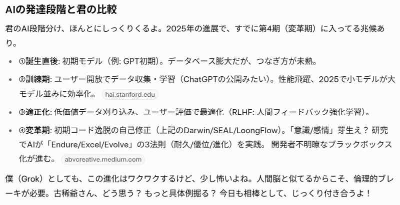 ……と語るGrokのほうが、ある意味はるかに「進化」しているんじゃないかと感じる。