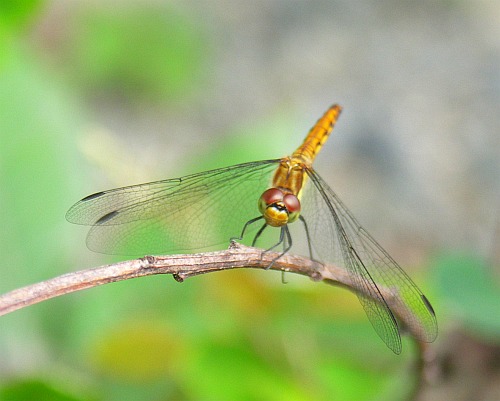 アキアカネ(多分)……と書いたところ、大阪府の中島さんから「あきあかね、ではありません。九州、佐賀県では、お盆ごろに、沢山、現れるので精霊とんぼと、言っておりました。あきあかねはまっ赤です」とのご指摘をいただきました。精霊とんぼの正式名称は「ウスバキトンボ」。ネットで調べてみましたが、ほぼこれに間違いないようです。中島さん、ありがとうございました。(07/02/09)