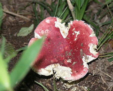 ペラペラ石への道の脇にて。いかにも毒キノコっぽいが、囓られた痕が……