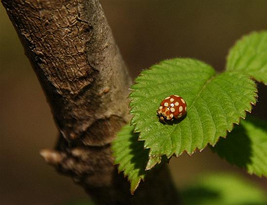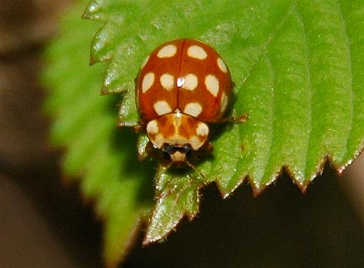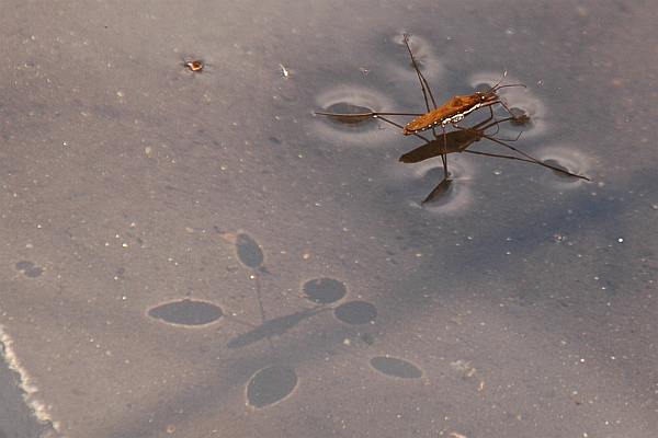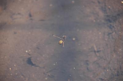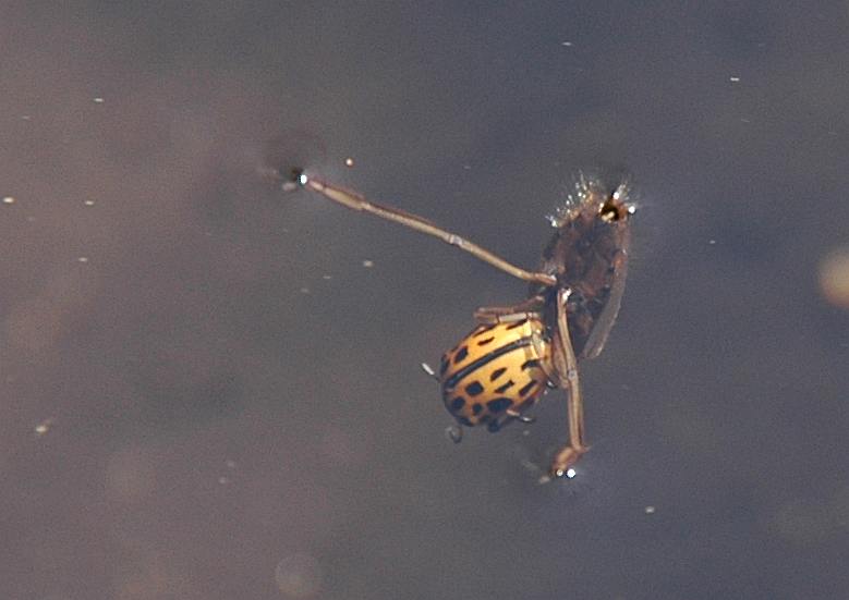 テントウムシを捕まえたマツモムシ(ひっくり返っている)