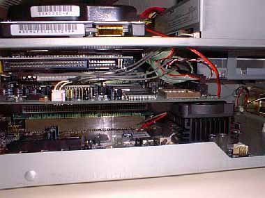 ↑CPUクーラーとSB16はほとんど接触しそうな状態になっている。これ以上高さのあるクーラーだとつけられない。SB16はISAバスで、この位置にしかつかない。また、このSB16を介してCD-ROMドライブが動いているので、つけないわけにはいかない。