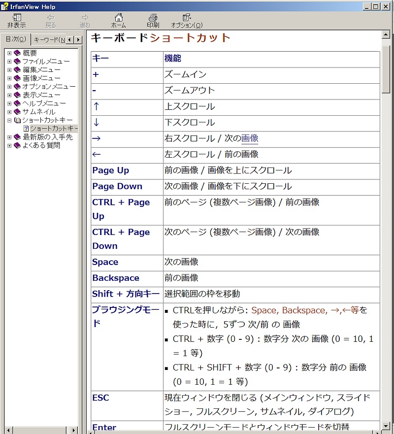 IrfanViewのよさは、マウスを使わずともショートカットキーだけで基本的な操作ができることです。ぜひ覚えましょう。