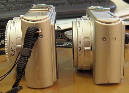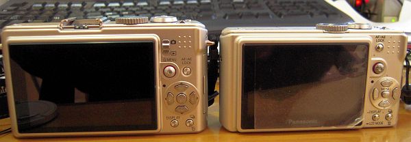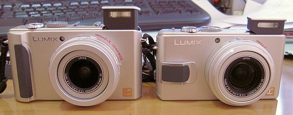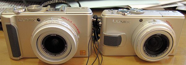 目の前に2台並べてみました。ご覧の通り、LX3のほうが一回り大きく、重いです。