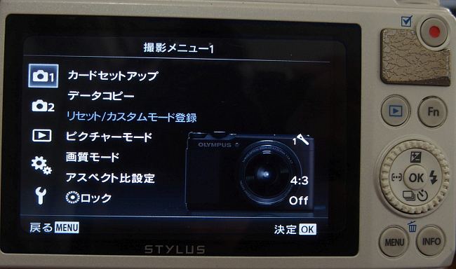オリンパスの場合、カメラアイコン1の中の「ピクチャーモード」という項目がそれです。