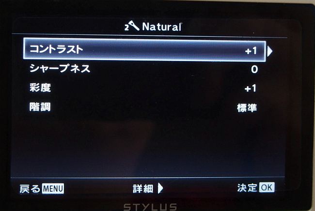 私の場合、Vividだとちょっときつい(不自然)なので、Naturalを選び、さらにコントラストと彩度を+1に上げています。