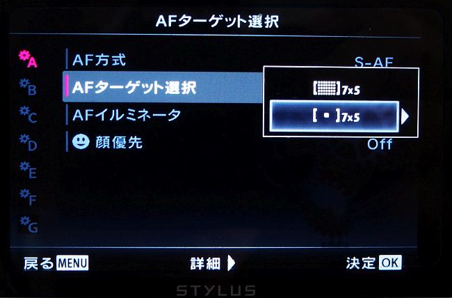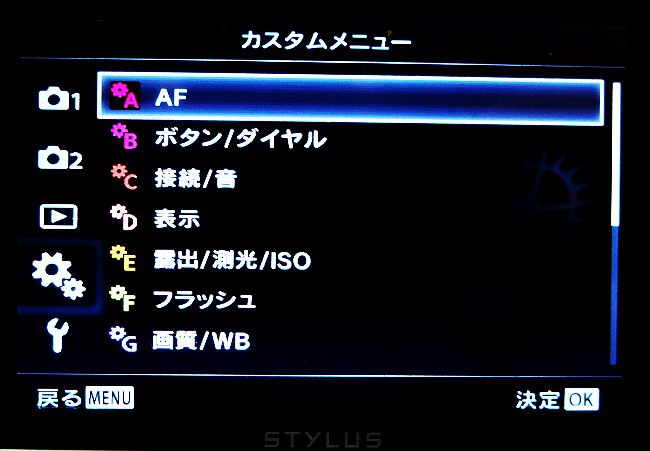 ここにAFイルミネータのON/OFFが入っていないのはつくづく残念です。結構切り替える必要があるのに……。
