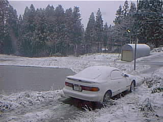![]() | まだ雪が重く、つもりかたは緩やかで、車は埋まっていない。雪の落下速度が次第に遅くなってきたときが怖い。 |