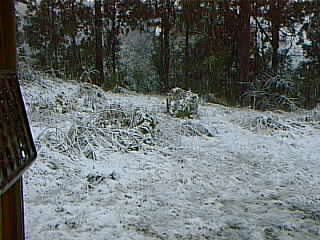 ![]() | 台所から見た景色。まだ真っ白とは言えないけれど、このまま降り続けばたちまち白で埋めつくされるだろう。生き物の気配はない。 |