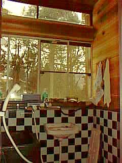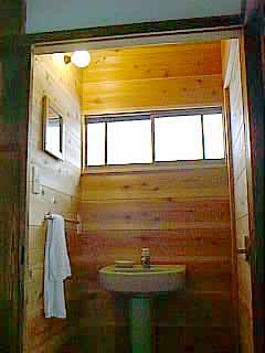 ↑自慢のトイレと洗面所。檜の床と地元新潟杉の壁。家を購入後、すぐに直した。トイレの掃き出し口窓はレトロな感じがいいかなと思って、わざと残したのだが、やっぱり余計だったかもしれない。冬はここから冷気が入り込む。一度、便器の内側に入っている水が凍結し(サイホン式水洗便器は横の部分に薄い水溜スペースが隠れている)、割れてしまった。