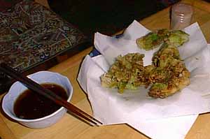 さっそく採って、天麩羅にして食べた。↓