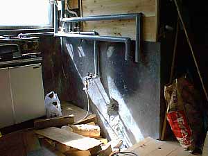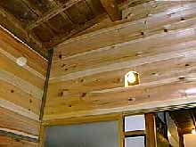 台所の残された壁を杉板張りに。