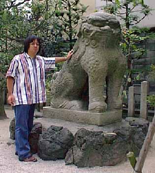 ↑清明神社の狛犬。他にもう1対いるが、そっちは省略。このどでか狛犬、新しいものだが、気に入った。
