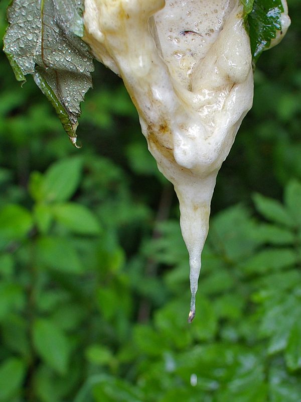 産みつけた直後から泡はかなりの粘度があり(スポンジケーキ程度)、表面が固くなってからは、中華饅頭くらいの硬さになる。