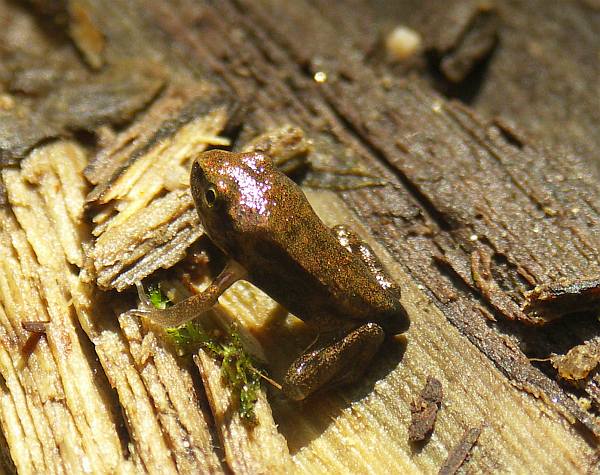 体色は明るい茶色。ヤマアカガエルに比べると色が薄い。