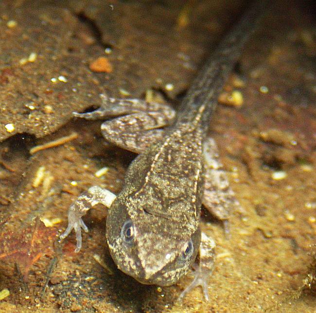 手足が生え、これから上陸準備をしようというヤマアカガエルのオタマジャクシ