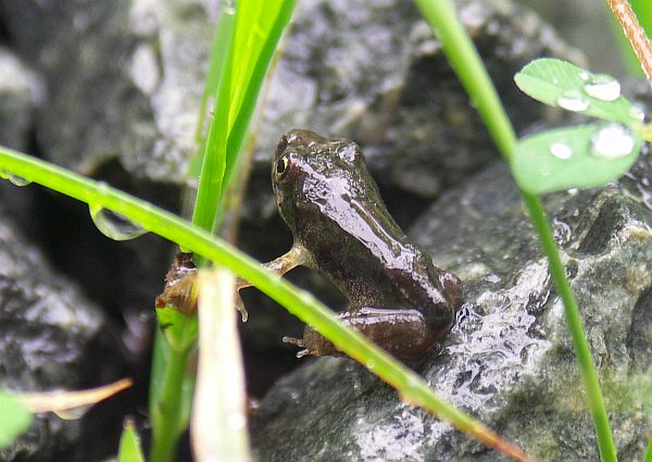 ニホンアカガエルと生息域が重なるが、名前の通り、比較的山地に多く棲む。