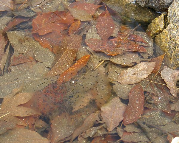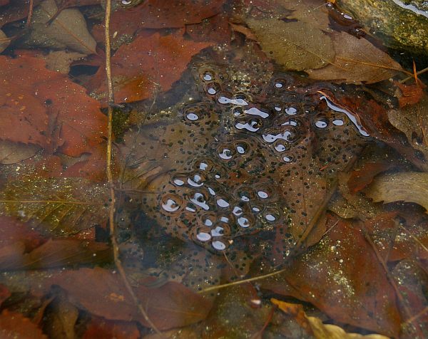 2008年、我が家の池に産みつけられたいちばん早い卵は3月27日だった。これは異例なこと。案の定、その後にまた寒気が戻り、夜間、池が再び凍りついたが、それでも卵は死ぬことはなく、孵化した。
