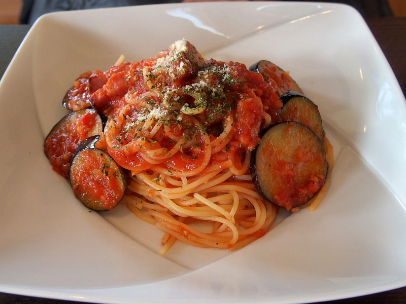 助手さんは茄子とベーコンのトマトソースパスタ。どちらも800円(税込)
