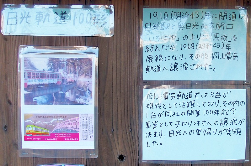 かつて「馬返し」まで走っていた軌道電車。いろは坂ができてからは廃線になった