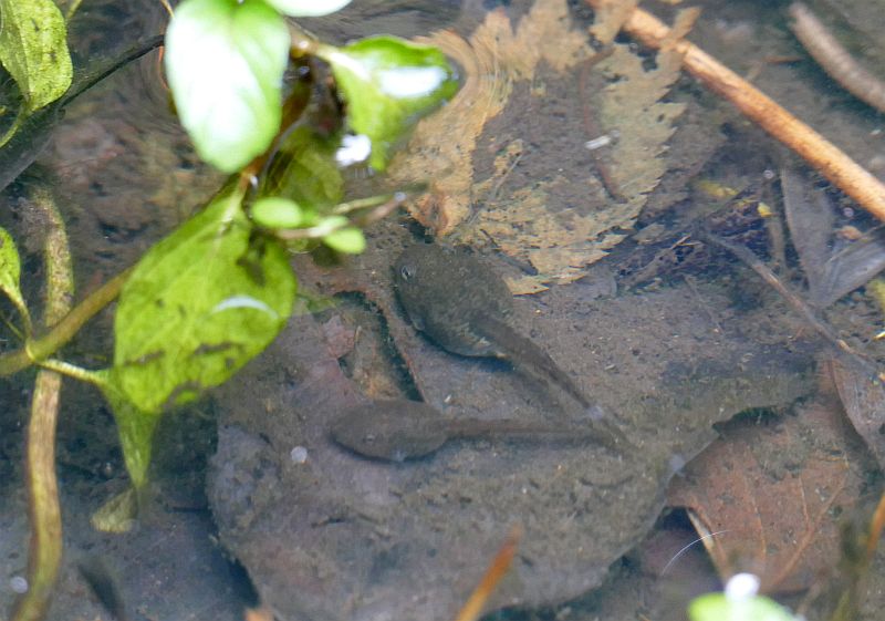 オタマが見えなくて、みんな食べられちゃったのかとか心配していたが、よ~~く見ると、いる。普段、枯葉の裏あたりに隠れているみたいだ