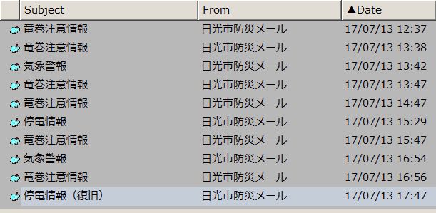 連日のように警報メールがケータイに届いてうるさい。竜巻どころか風も吹かないのだが……