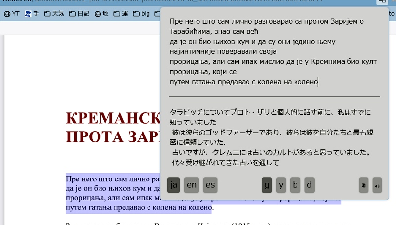 ↑キリル文字で書かれたセルビア語だが、日本語に変換してくれる