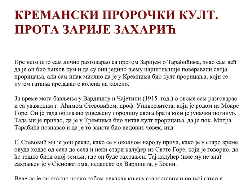 さて、今回はあちこちのタラビッチ関連サイトで話題になっているプーチンのことらしい記述や、第3次世界大戦のことを予言している部分に触れようかと思ったのだが、「原書」ともいえるセルビア語のこの文献を見つけたことで、今回はそこまで急がないことにした。